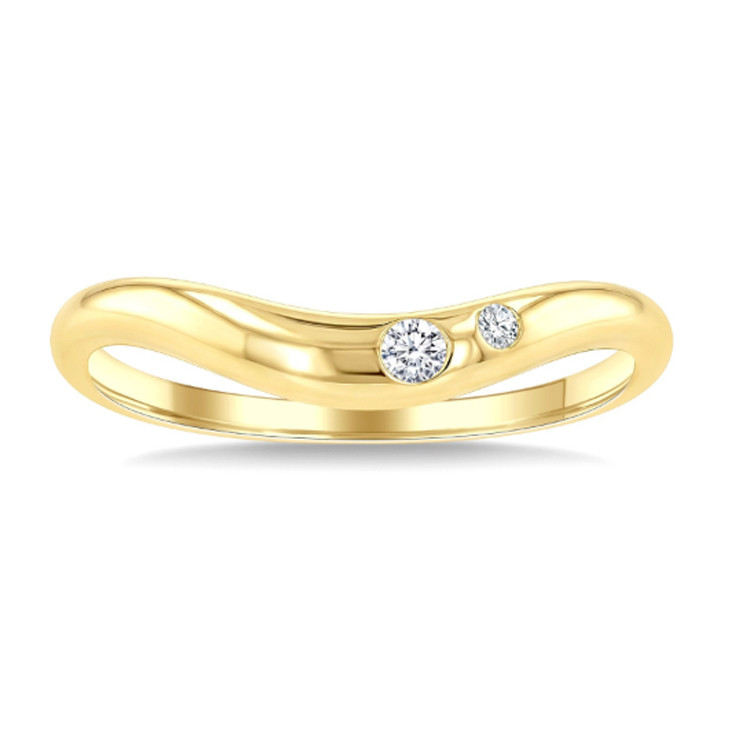 10K Yellow Gold - Flush Set Round Diamond Curved Wave Band featuring two round cut white natural diamonds totaling - 0.05ct.