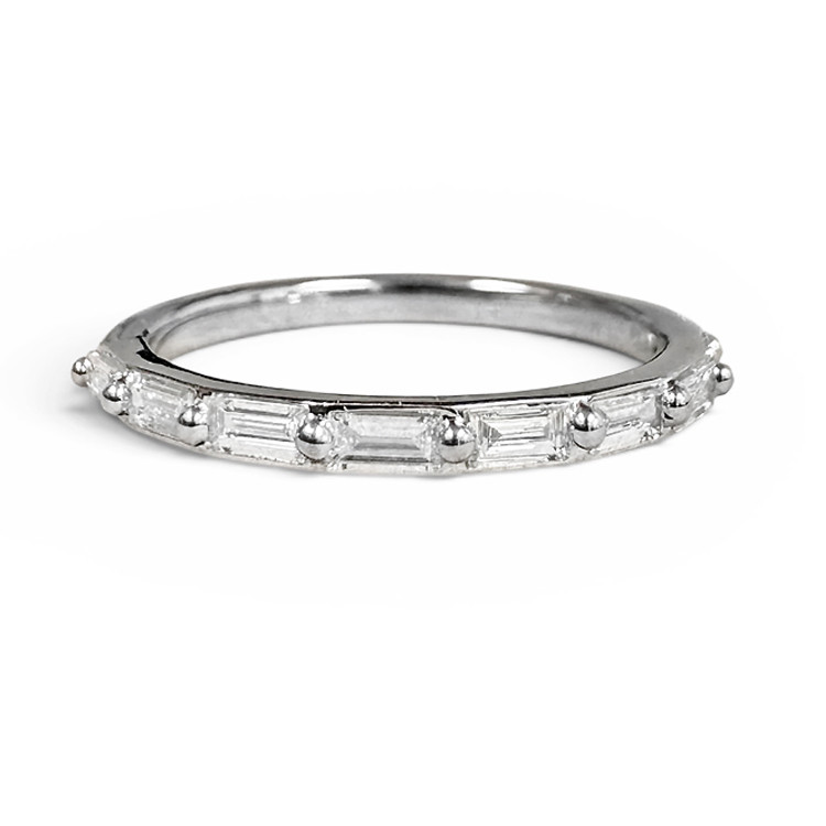 14K White Gold - 0.38ct - Baguette Cut Diamond Single Prong Set Band featuring premium quality natural diamonds graded as F-G color with VS clarity.