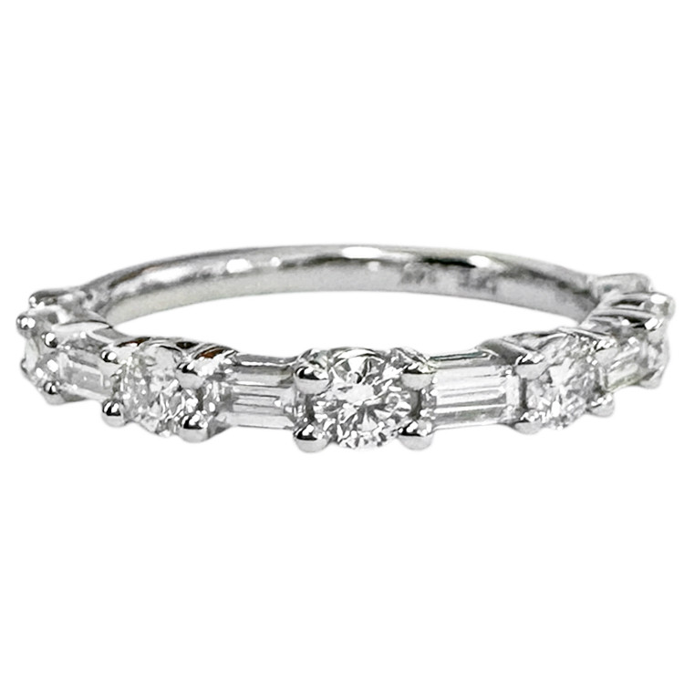 14K White Gold - 0.75ct - Round & Baguette Cut Diamond Alternating Band featuring premium natural graded diamonds totaling 0.75ct
