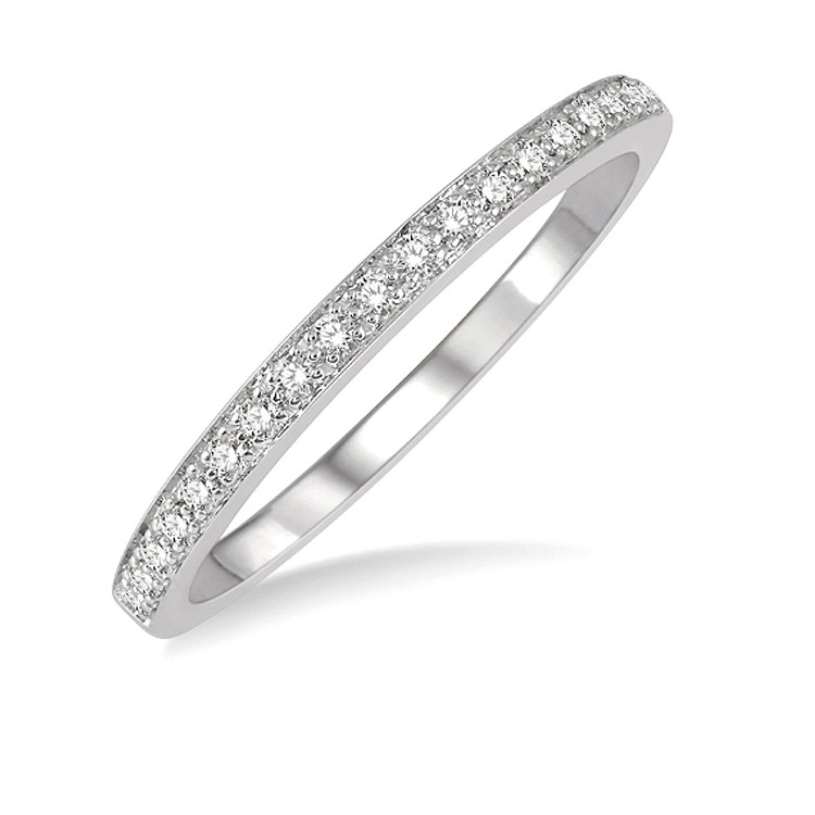 14K White Gold - Round Diamond Straight Classic Stackable Band feautring natural round cut diamonds, prong set totaling = 0.15ct