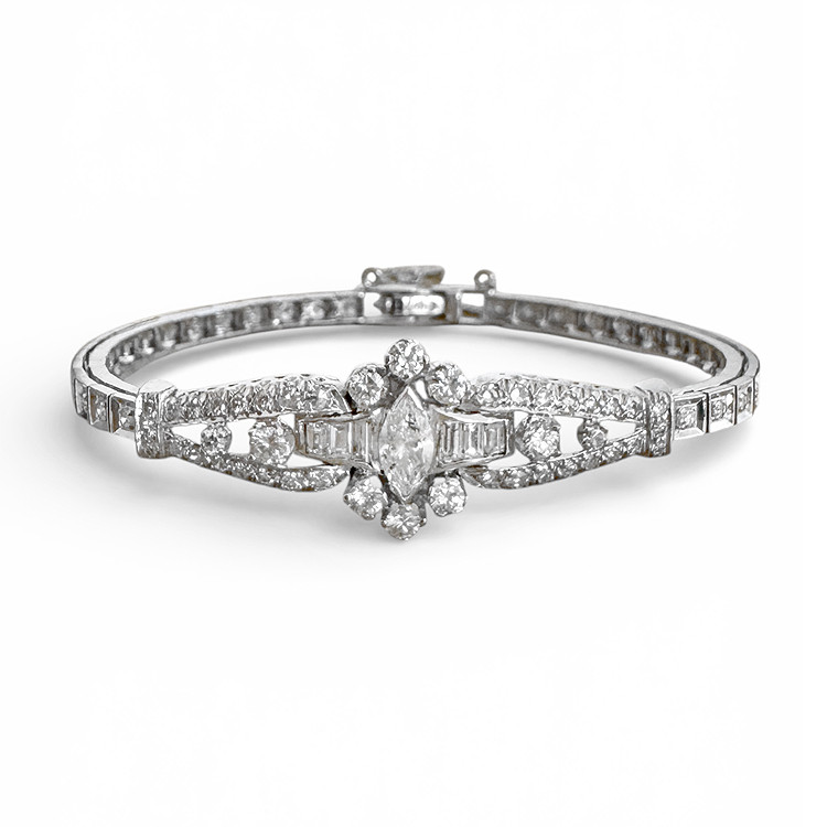 14K WHITE GOLD - VINTAGE MARQUISE & ROUND DIAMOND BRACELET (2.5 CTW)