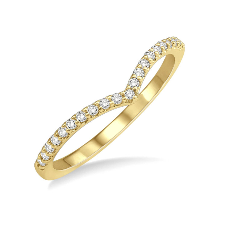 14K Yellow Gold - Round Cut Diamond Chevron V - Style Band featuring 0.15ct of round natural diamonds.