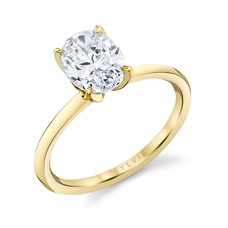 14K Yellow Gold - Designer Sylvie - Diamond Set Tulip Style Prong Engagement Ring Solitaire Setting featuring natural round cut diamonds totaling = 0.13ct. The Ring setting can be custom made for any shape or size center stone of your choice.