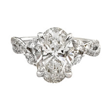 14K White Gold - 1.85ct - Oval Cut Twisted Floral Cathedral Engagement Ring (0.33ct)