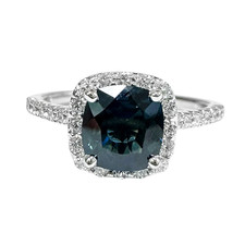 14K White Gold - 1.55ct - Teal Cushion Cut Sapphire Halo Diamond Ring (0.42ct)
