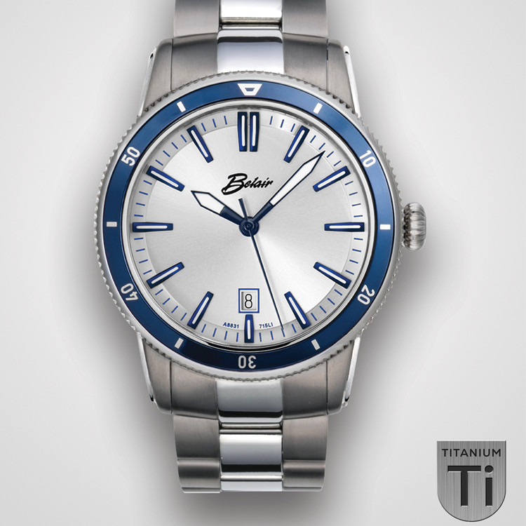 EWJ Signature Watch - Gents TITANIUM Steel Grey Dial & Blue Bezel