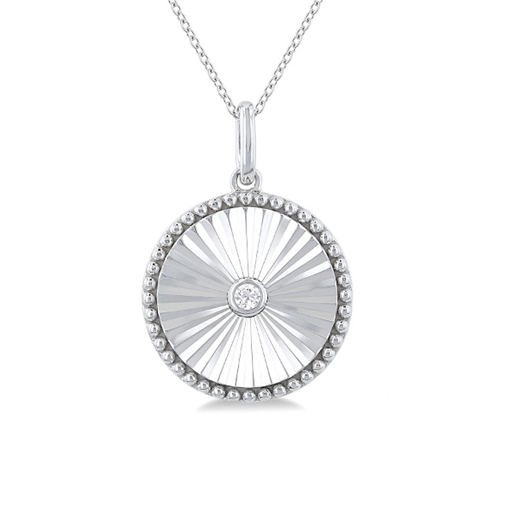 Sterling Silver - Diamond Cut Bezel Set Round Medallion featuring one natural round diamonds weighing = (0.04ct)